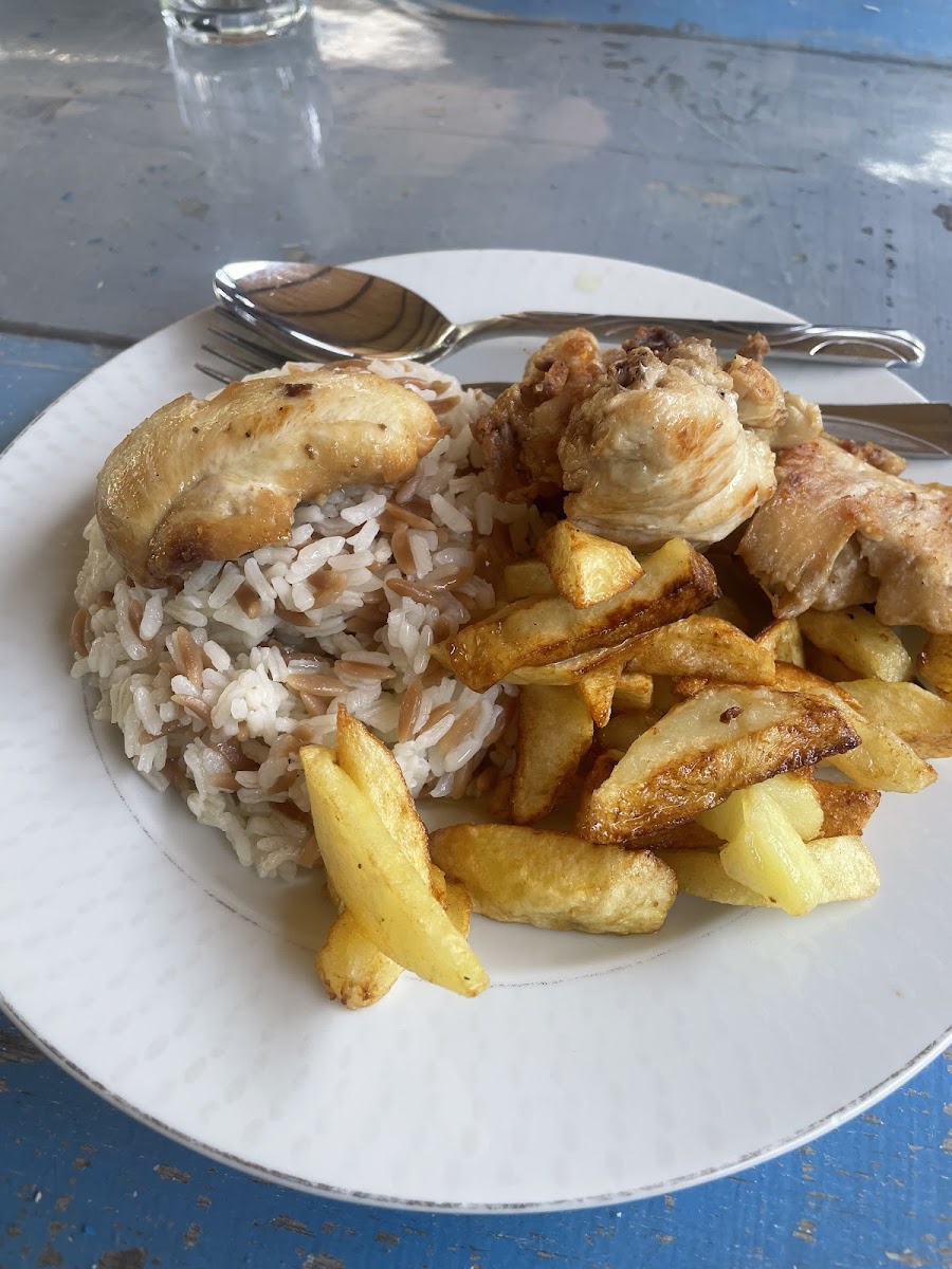 Beyond the culinary delights, the cafe is also a haven for nature lovers. As you enjoy your meal, you’ll find yourself surrounded by the gentle presence of chickens, goats, and friendly cats, creating a lively yet peaceful ambiance that connects you with the charm of village life. Take a stroll through the endless olive trees that line the path to a hidden cove, a sacred spot where you can bask in the sun or take a refreshing dip in the turquoise waters—a recommendation that comes straight from the thoughtful owners.